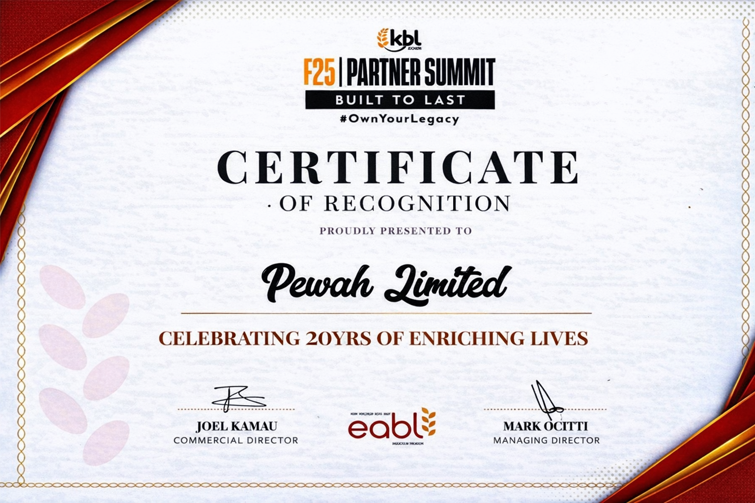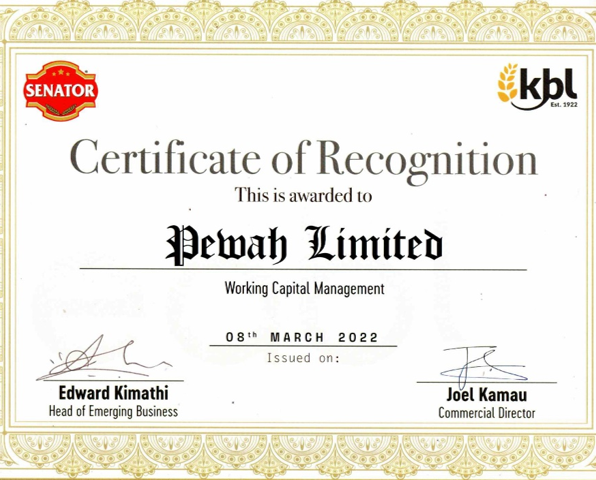 PEWAH Limited was established as an accredited EABL distributor in March 2006. The company specializes in the distribution of premium alcoholic beverage categories, including Keg, Beer, Spirits, and Ready-to-Drink (RTD) products. Its portfolio is anchored by flagship brands such as Senator Keg and a range of UDV products, including Kenya Cane, Chrome, and Captain Morgan, reinforcing its position as a key player in delivering quality and trusted brands to the market.